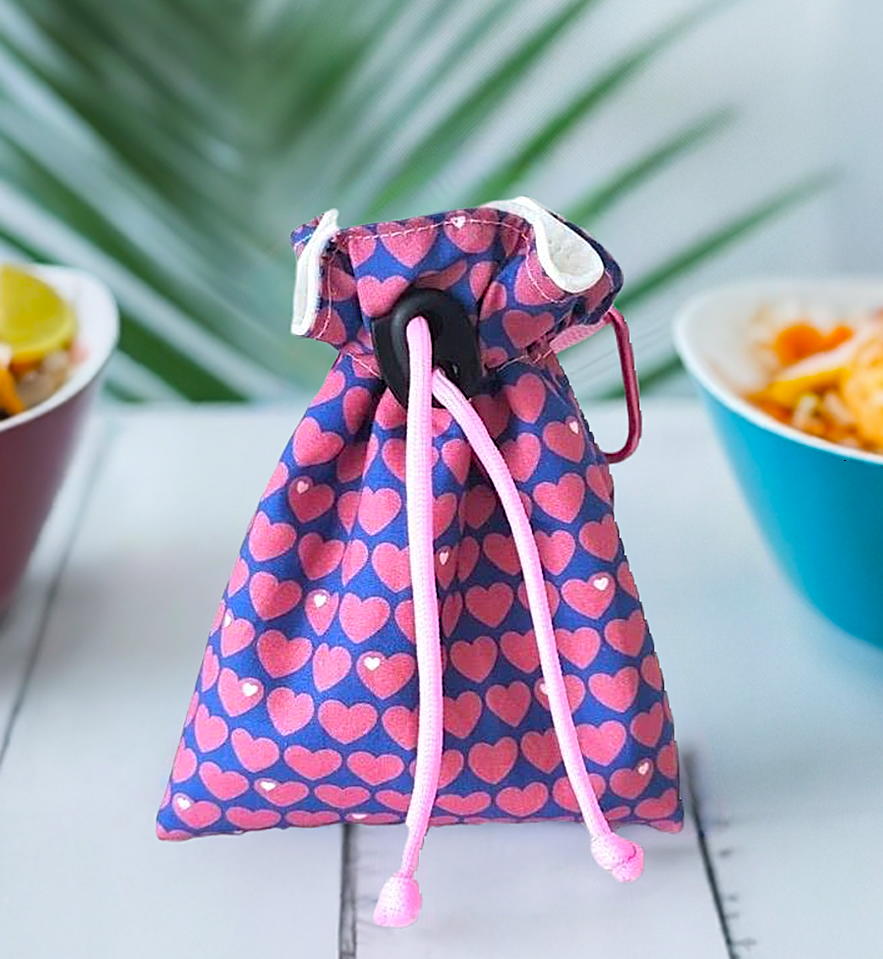 Futterbeutel beherzt Leckerli Beutel für Hunde Blau mit pinken Herzen aus Baumwolle für Hunde – ideal zum Training & Gassi
