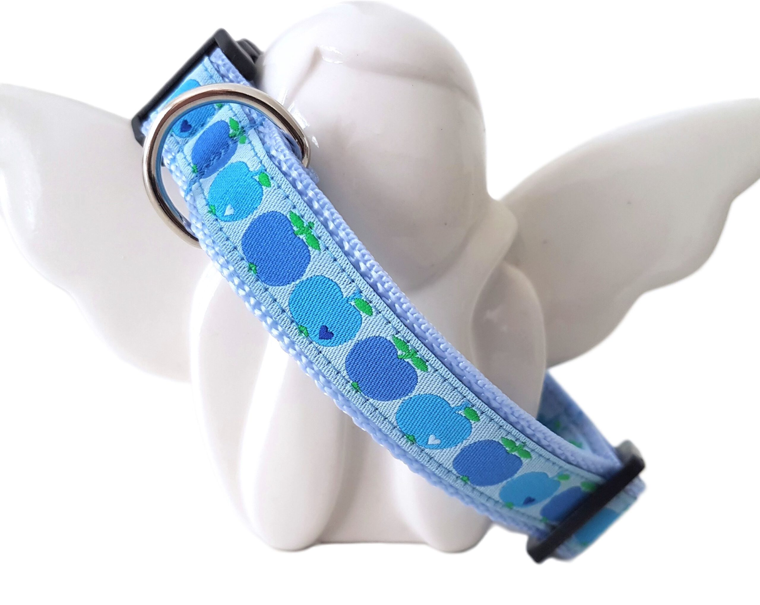 hundehalsband bezaubernd Halsband für Hunde 25 bis 45 cm hellblau mit Apfel Motiv