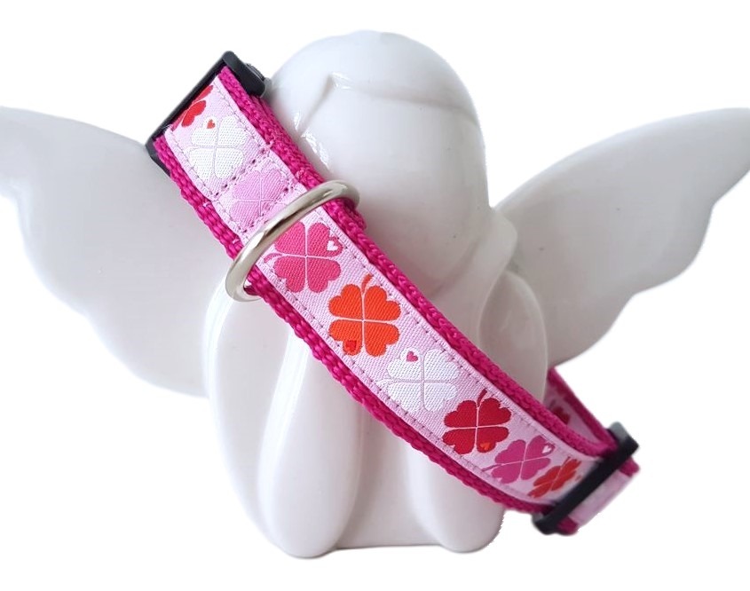 hundehalsband Halsband für Hunde 25 bis 45 cm pink rot Glücksklee Motiv