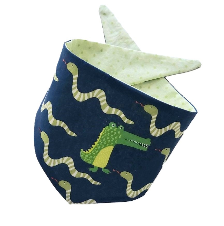 ein Hundehalstuch zum binden aus Baumwollstoff in der Farbe blau mit Krokodil und Schlangen Motiv, sowie grün mit Pünktchen. Das Halstuch kann von beiden Seiten getragen werden. Dein Hund sieht mit einem Halstuch einfach nur niedlich aussehen.  Das Hundehalstuch gibt es in verschiedenen Größen.