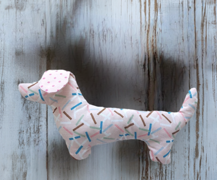 Hundespielzeug Spielzeug für kleine Hunde Dackel rosa mit Stäbchen Motiv