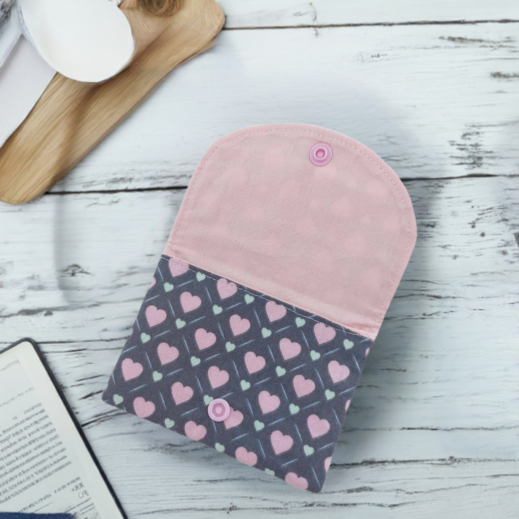 Minitäschchen beherzt Täschchen außen anthrazit mit Herzen Motiv innen rosa